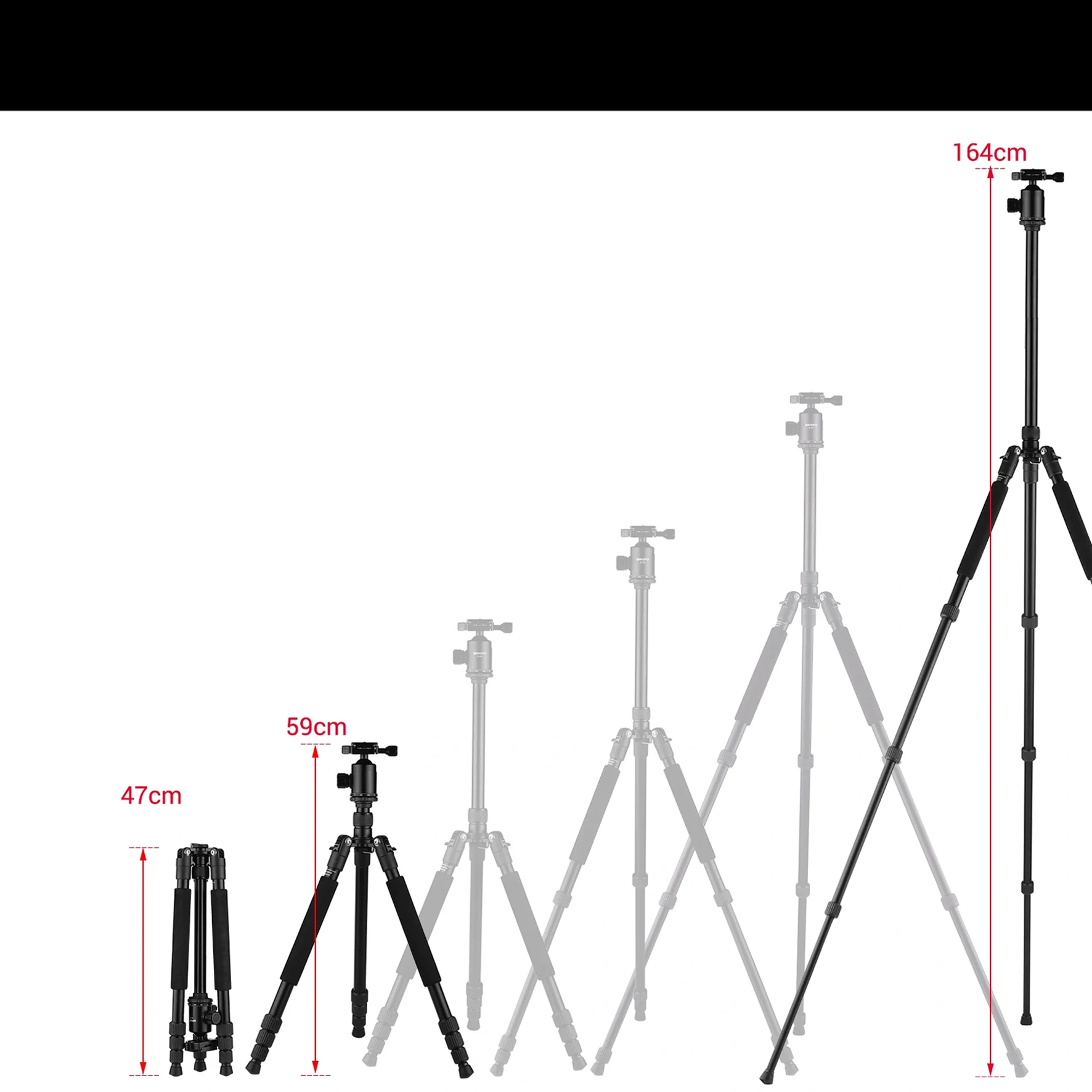 With the ability to be adjusted to a maximum height of 164cm, this tripod offers excellent performance in achieving a wide range of shooting angles and heights.