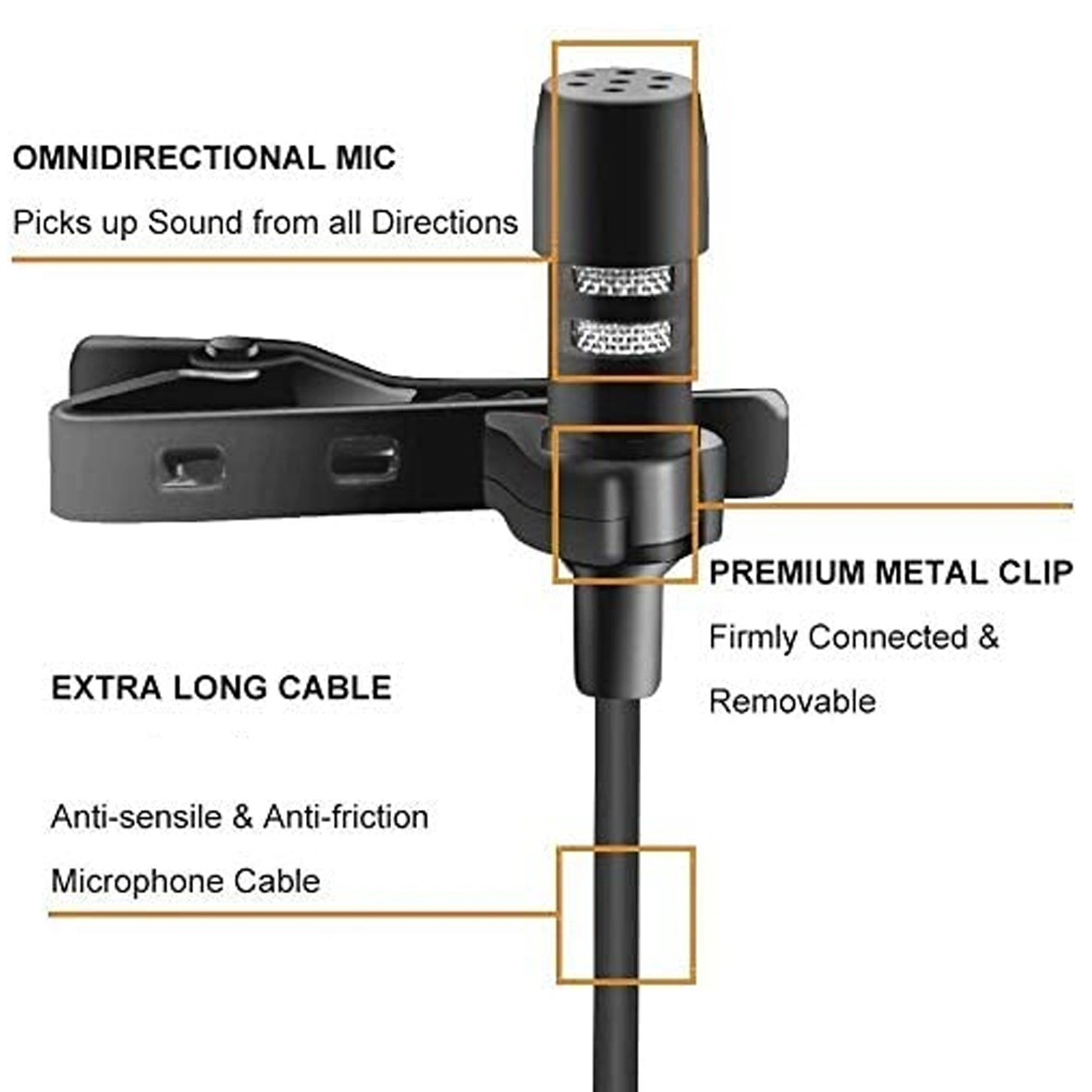 Made with quality materials like metal and copper, this microphone is durable and reliable for long-term use. Quality metal clips also add stability when attached to clothing.