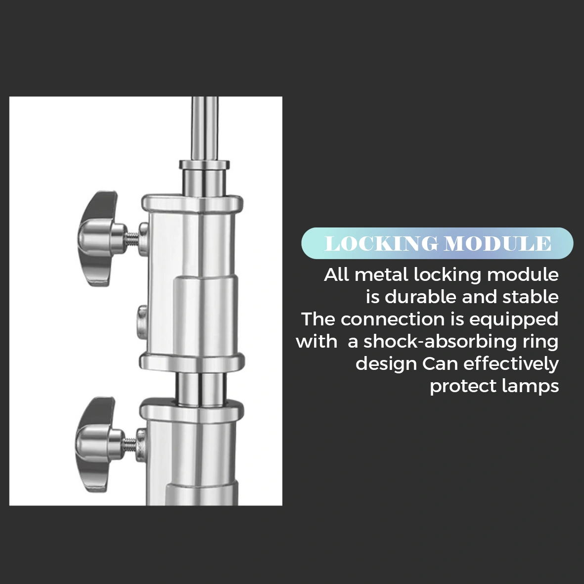 This boom arm is equipped with a carabiner that makes installation and removal easy, ensuring you can set up and adjust the boom arm quickly and efficiently. The half-round head design allows for easy adjustment of the boom arm angle, providing additional flexibility in positioning the light. This is very important to get optimal lighting that suits your needs.