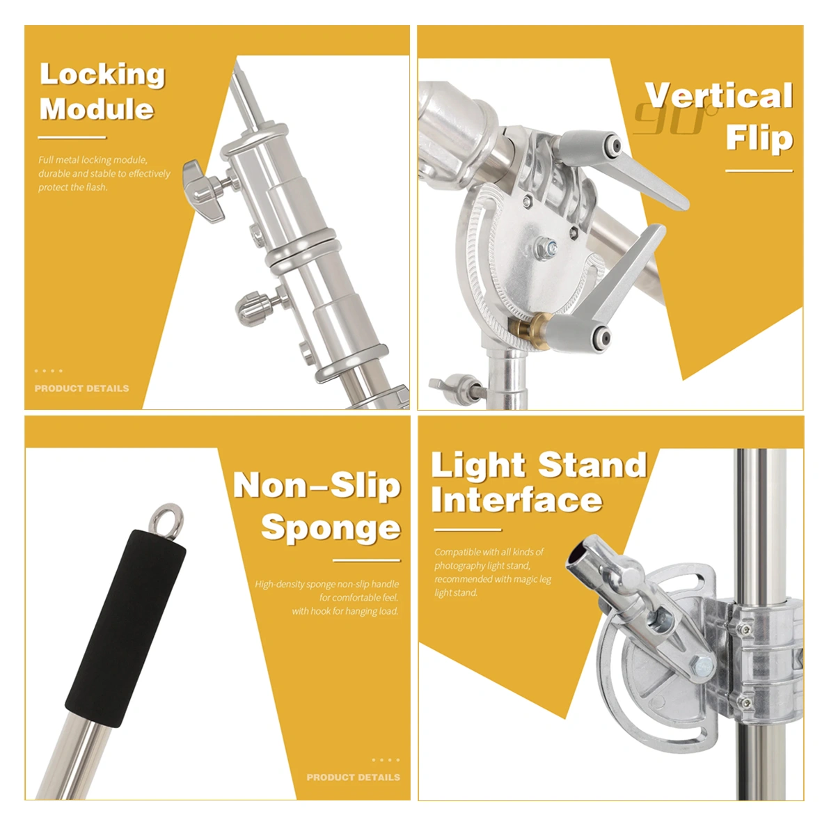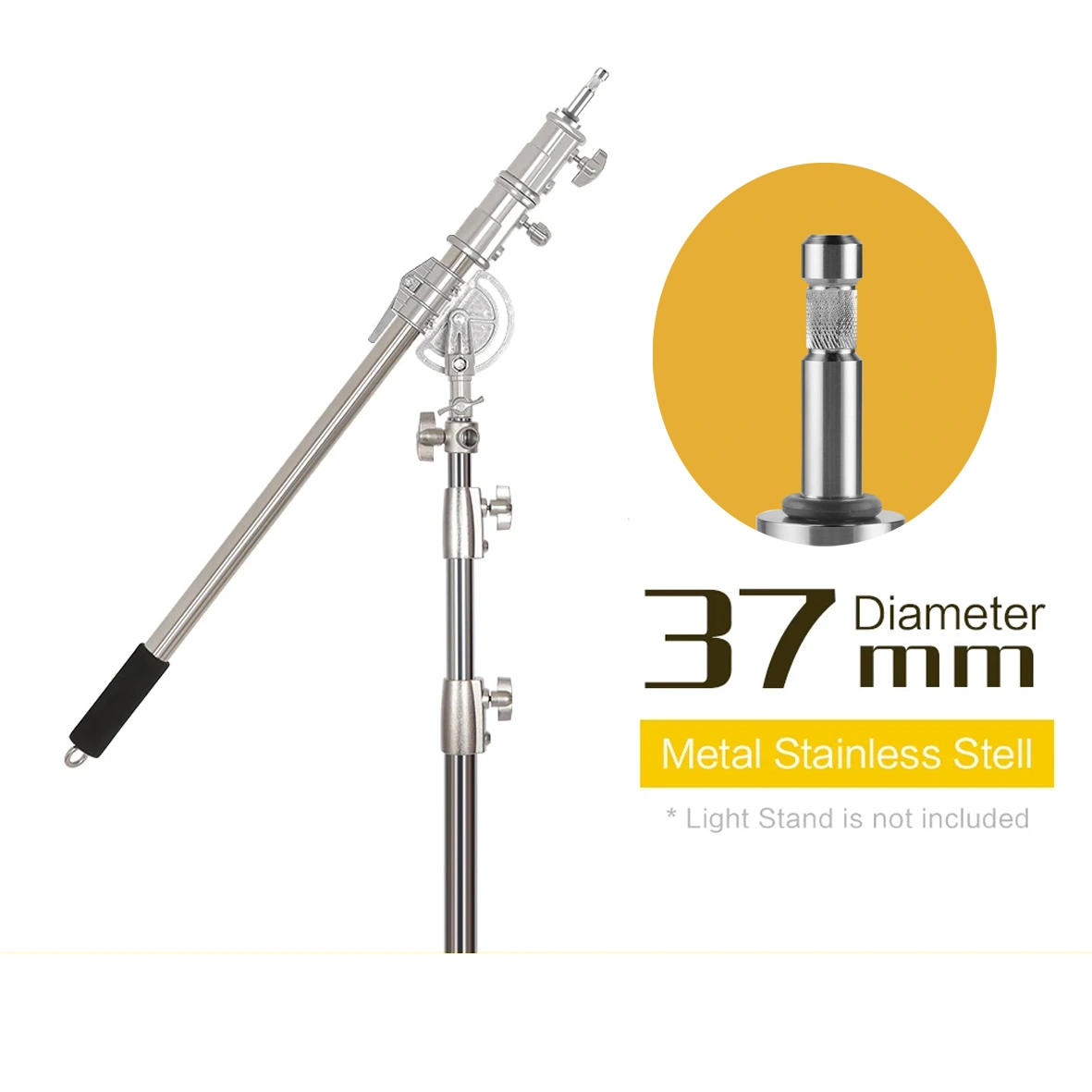 Crafted from stainless steel, this boom arm offers exceptional durability and durability. This material is not only resistant to corrosion but also very strong, ensuring the boom arm can withstand heavy loads and be used for a long time. With a load capacity of up to 12kg, this boom arm is able to safely hold various types of lighting equipment. This ensures that your equipment remains stable and undisturbed during the shooting session.