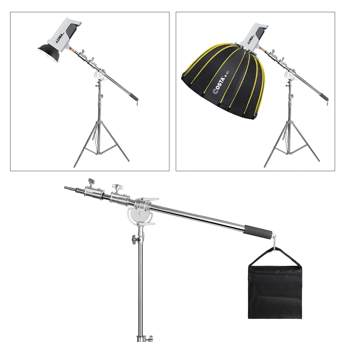 The cross arm is adjustable in length from 110cm to 250cm, providing the flexibility needed for a variety of lighting setups. This is very useful for adjusting the position of the light according to the specific needs of the shoot. With a folded length of 106cm, this boom arm is easy to store and carry to various shooting locations. Compact design makes transportation easy without sacrificing stability and performance.
